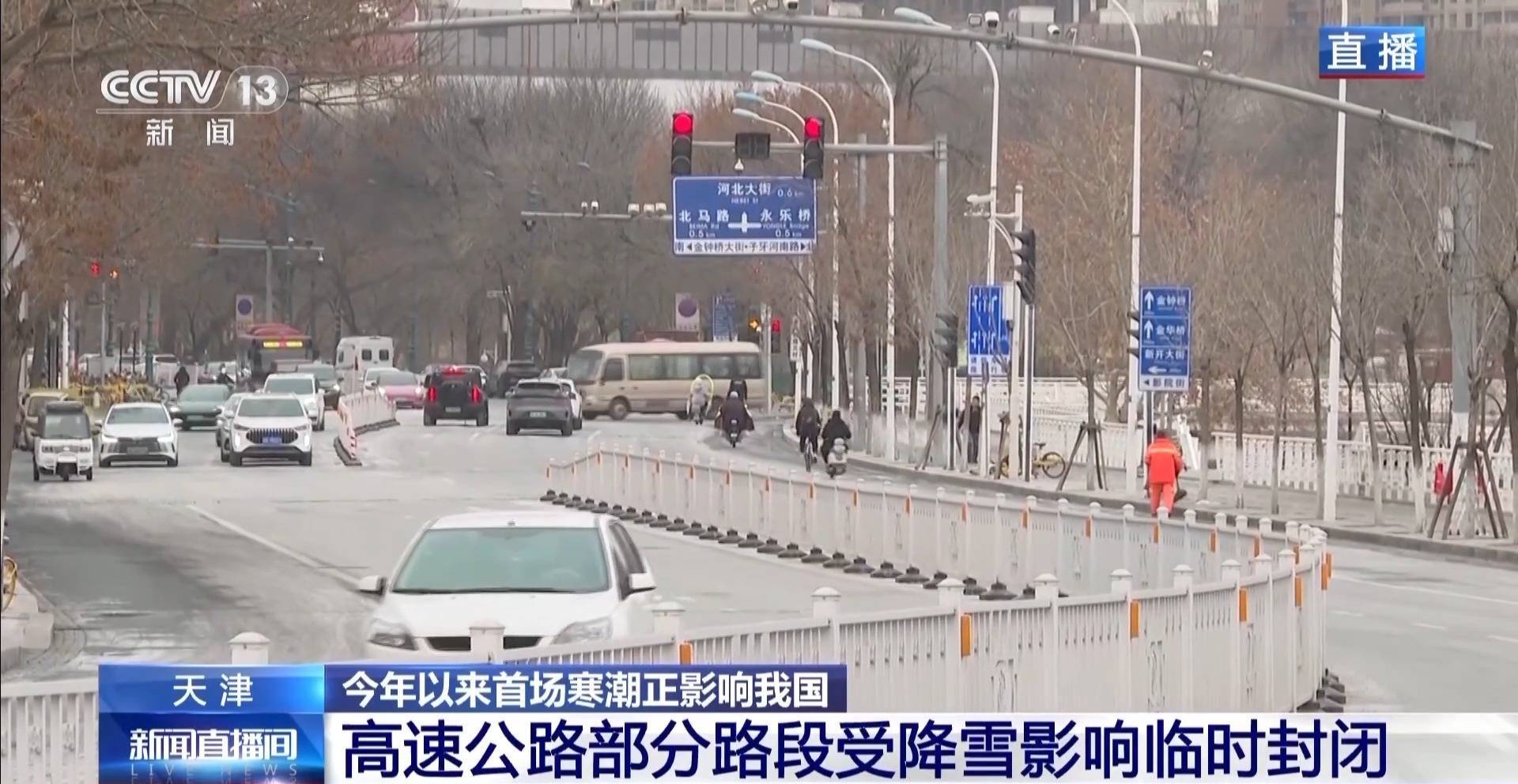 从昨晚6时开始,途经天津的所有高速限行了危险品车辆。昨天天津发布了道路结冰黄色预警,现在天津室外温度是-6℃ ,所以道路结冰还会持续。据气象部门介绍,这场降雪将持续到今天下午,但低温天气还会持续五六天的时间。