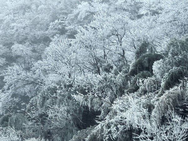 21日上午,江西分宜县大岗山白茫茫一片。(来源:@江西气象)