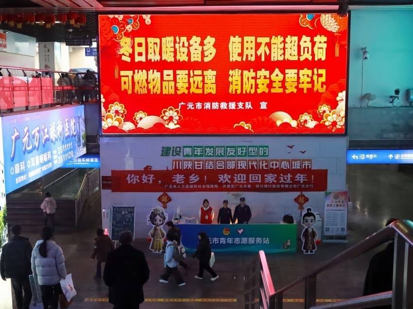 利州大队、经开大队消防宣传员分别在机场、高铁站候车厅及进出站口设置宣传点位。活动现场,宣传员用通俗易懂的方言向返乡群众讲解春节期间用火用电用气、烟花爆竹燃放等安全常识并结合典型火灾案例,剖析火灾隐患危害和逃生自救技巧,提醒群众出行前关好家中电源、燃气,切勿携带易燃易爆物品乘坐交通工具。