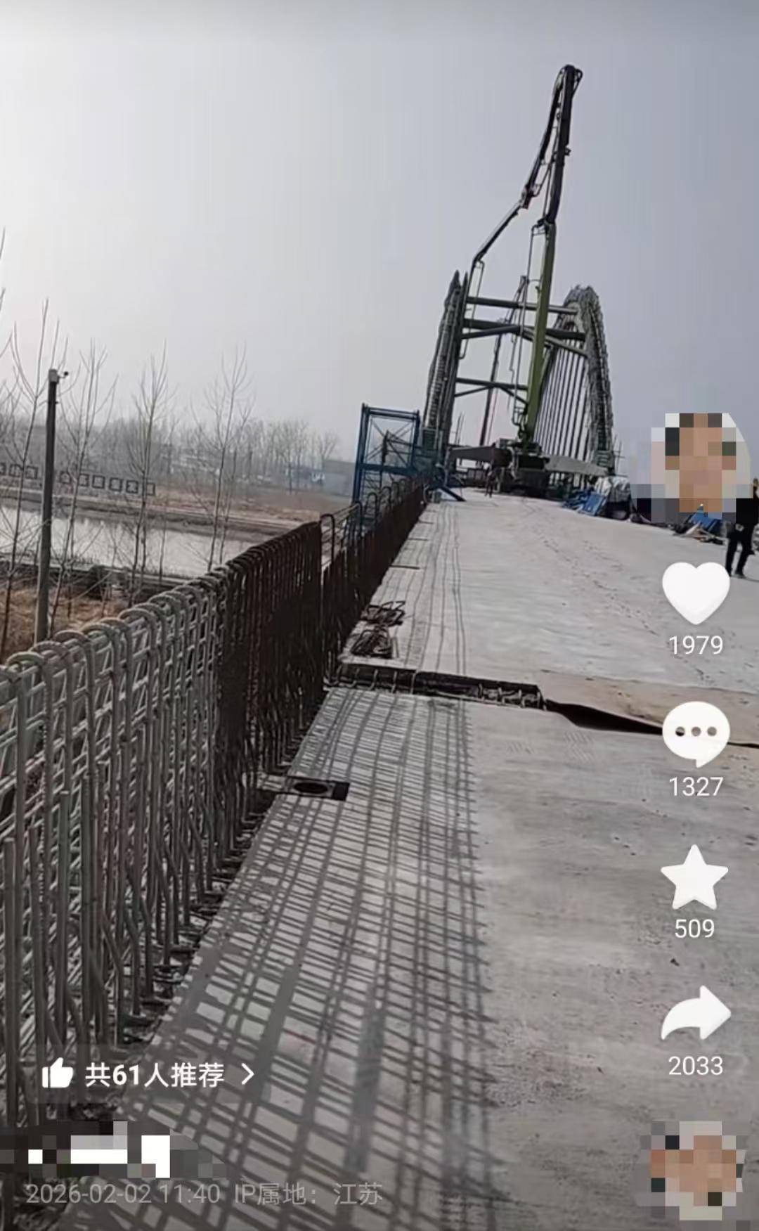 该桥位于小尖镇月港村,记者注意到,从2025年12月初开始,一网友在短视频平台经常记录修建该桥的过程,其称是修建该桥的农民工,60后,和工友负责打灰。