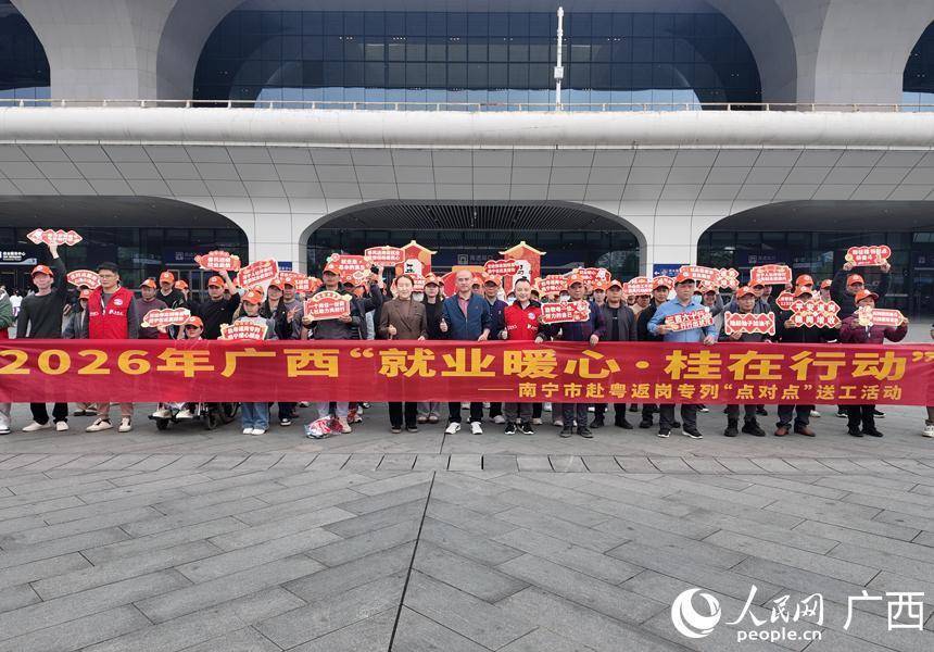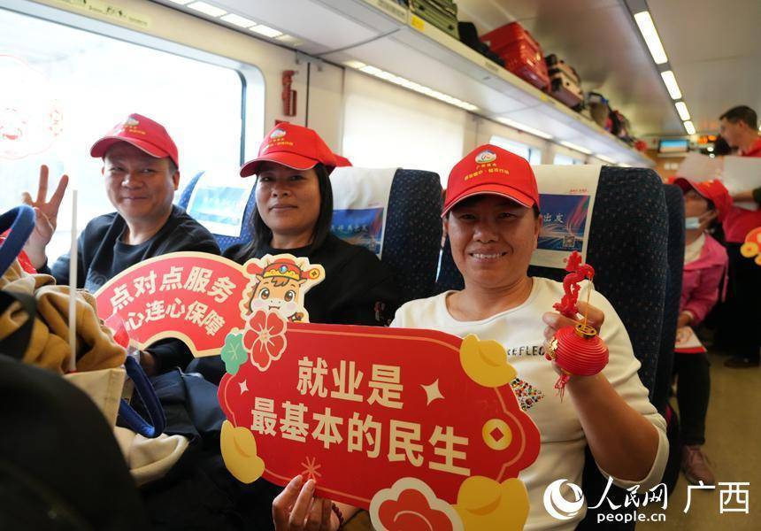 广西是劳务输出大省,每年约有600多万人到广东务工。为进一步深化粤桂劳务协作、助力全面推进乡村振兴,粤桂两省区人力资源社会保障部门联合国铁南宁局开展“点对点”送工服务活动,务工专列费用由地方政府承担,务工人员免费乘坐。
