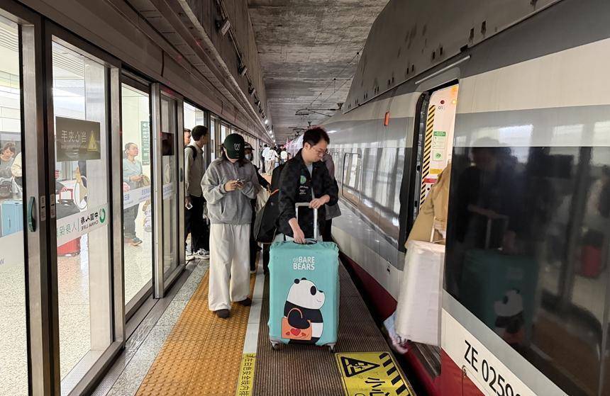 旅客在福田高铁站搭乘广深港高铁。田恬摄